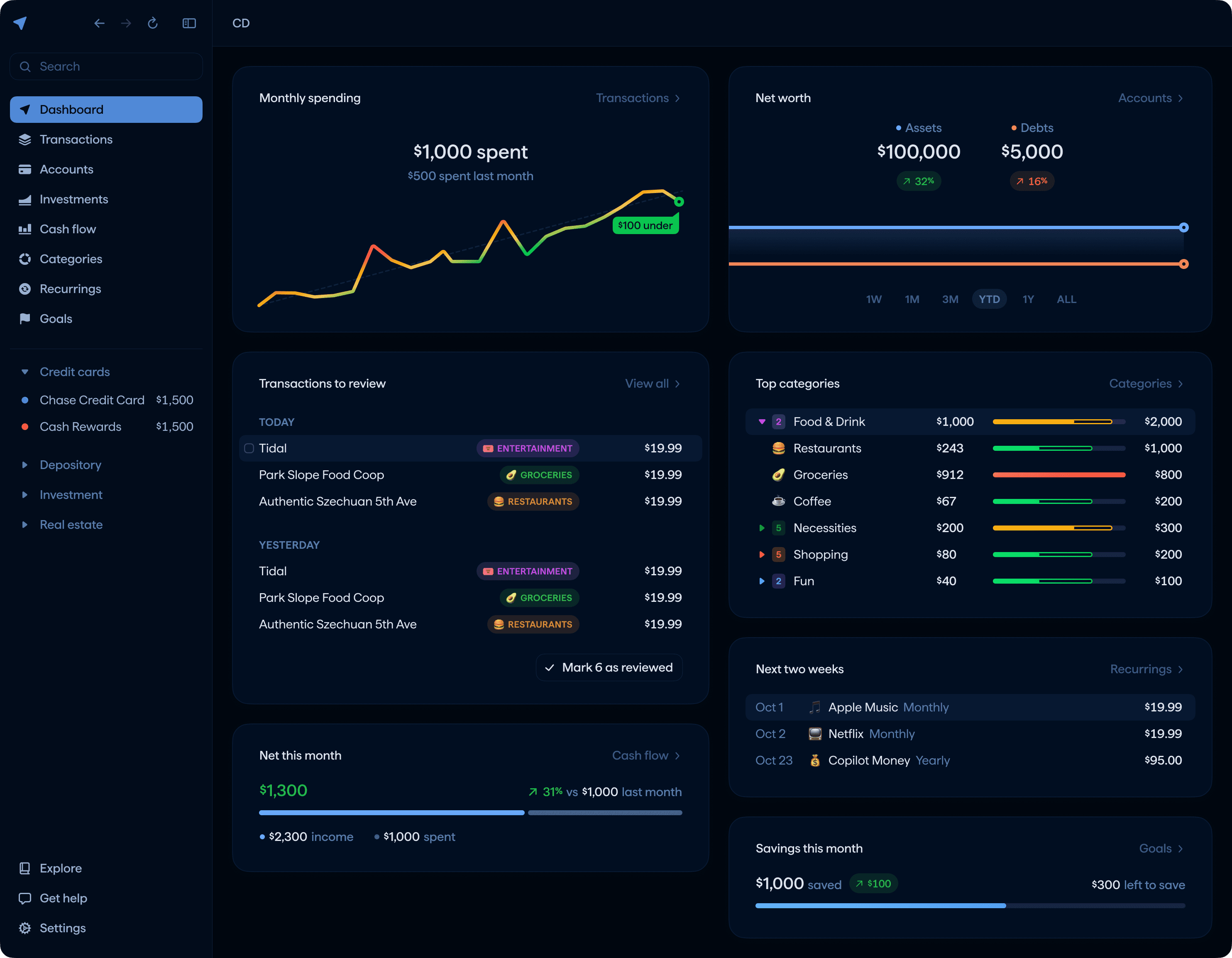 @copilotmoney is awesome, clean design and easy to use