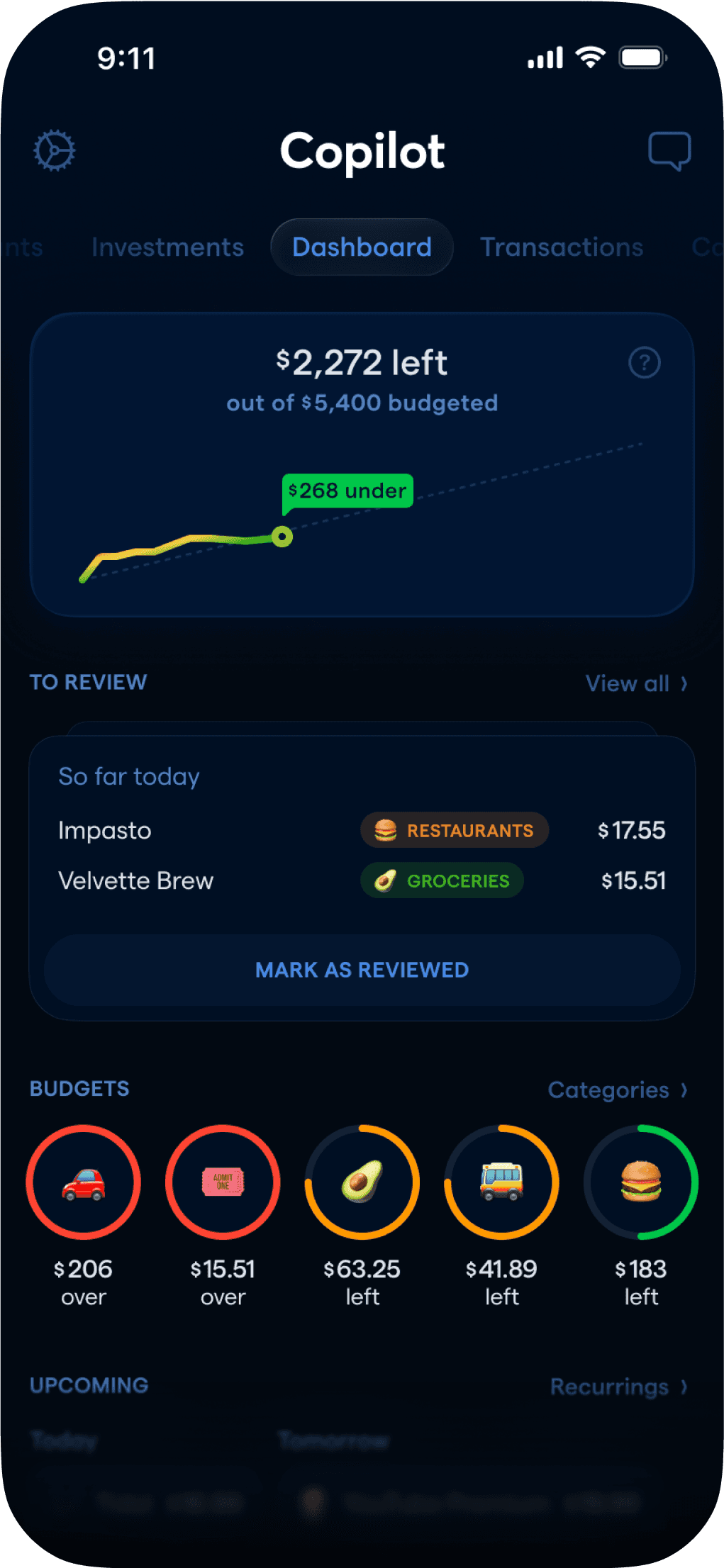 The Best Budgeting App!! Copilot has been a magical experience so far. They’ve innovated the experience of budgeting - it helps keep you informed, but the right things are automatic and effortless. You can choose how manual you’d like it to be - or how much you’d like the app to do the work for you. They’ve solved most of the gaps from mint - and it’s easy to get a budget set up. PFM has been over complicated for too long but Copilot has done a great job of making it easy.